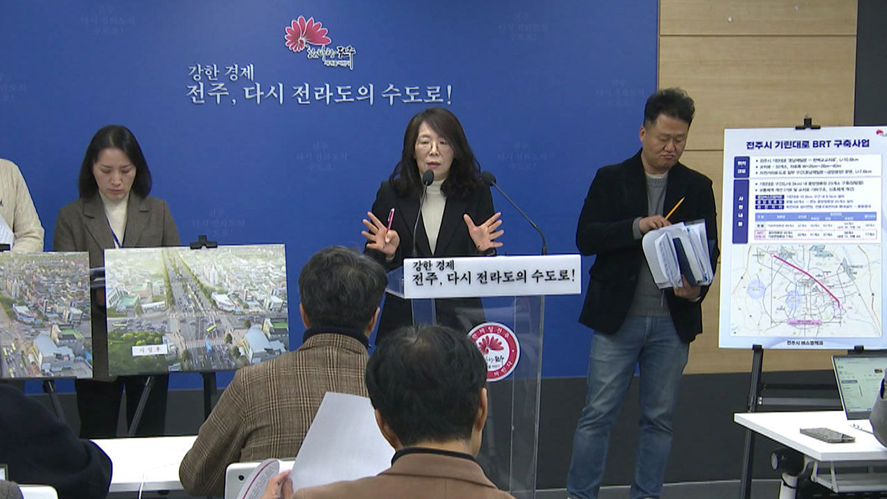 전주시는 448억 5천만 원을 들여 내년 11월 개통을 목표로 여의광장사거리에서 오목대까지 이어지는 기린대로 9.5km, 3개 구간에 버스 중앙차로와 정류장 등을 설치한다고 밝혔습니다.