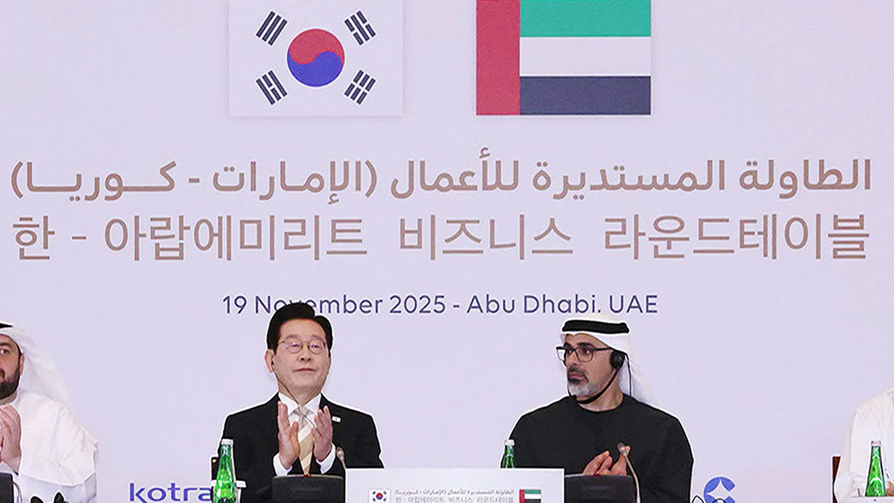 이재명 대통령의 아랍에미리트 국빈 방문 사흘째, 한국과 아랍에미리트 주요 경제인들이 함께 하는 한국-UAE 비즈니스 라운드 테이블 행사가 아부다비에서 열렸습니다.