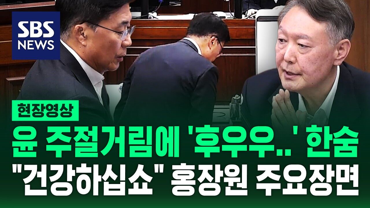 윤 전 대통령이 같은 취지의 질문을 반복하며 말이 길어지자, 홍 전 차장의 마이크를 타고 한숨 소리가 흘러나왔습니다. 오전, 오후 합쳐 8시간에 달하는 증인 신문이 끝나자, 홍 전 차장은 자리에서 일어나 윤 전 대통령을 향해 90도 인사를 했습니다.