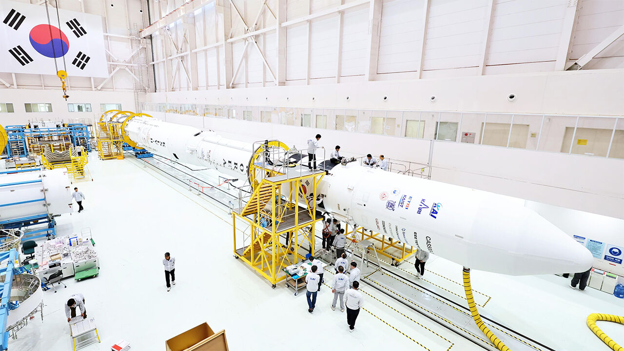 ▲ 고흥 나로우주센터 조립동에서 지난 19일 연구진들이 누리호 4차 발사 총조립을 수행하고 있다.