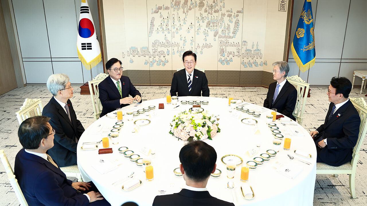 이 대통령은 이어 "애초에는 순방 결과도 말씀드리고, 국정 운영 상황도 말씀드리며 조언을 들어보고 싶어 마련한 자리"라며 "앞으로도 자주 모시겠다. 허심탄회하게 각 기관 운영의 어려운 점에 대해서 논의를 해봤으면 좋겠다"고 제안했습니다.