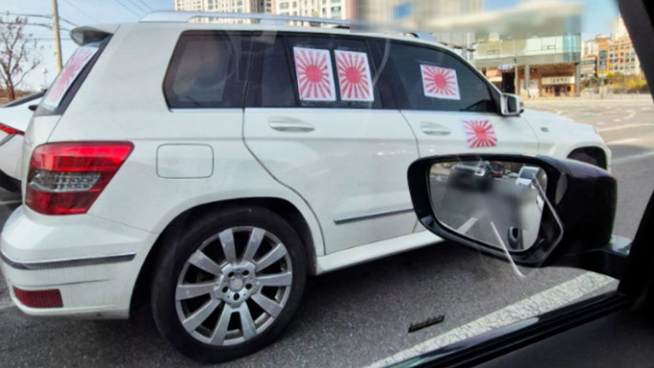 공개된 차량은 창문과 차체 곳곳에 붉은 욱일기 문양 스티커가 붙어 있었는데, 목격자는 '뉴스에서만 보던 일을 실제로 보게 될 줄 몰랐다'며 황당함을 전했습니다.