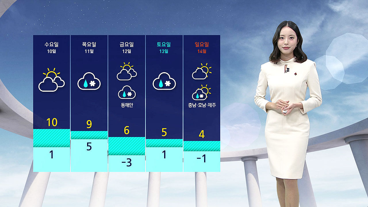 목요일과 토요일에는 전국에, 일요일에는 충청과 호남, 제주에 비나 눈 소식이 들어 있습니다.