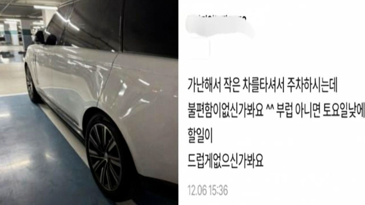누리꾼들은 '주차 문제보다 말이 더 문제'라며 '같은 아파트 주민에게 가난 운운하는 것은 인격의 문제'라는 비판이 나오고 있습니다.