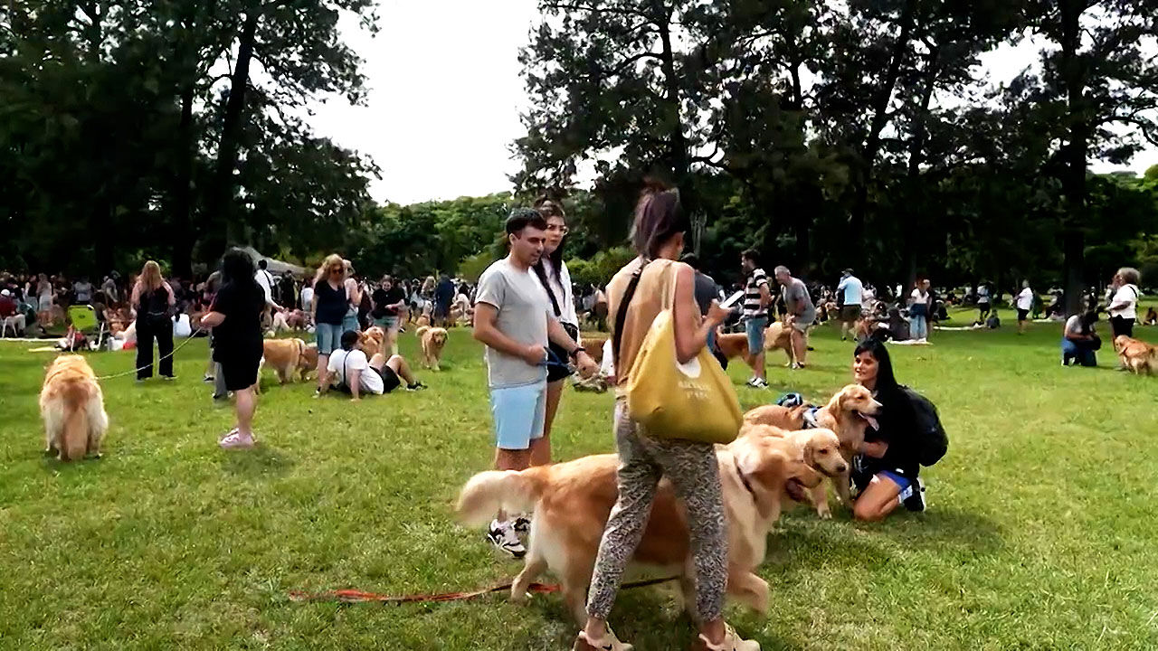 순하고 명랑한 성격에 천사견으로 유명한 골든 리트리버들이 아르헨티나의 한 공원을 황금빛으로 물들였습니다.