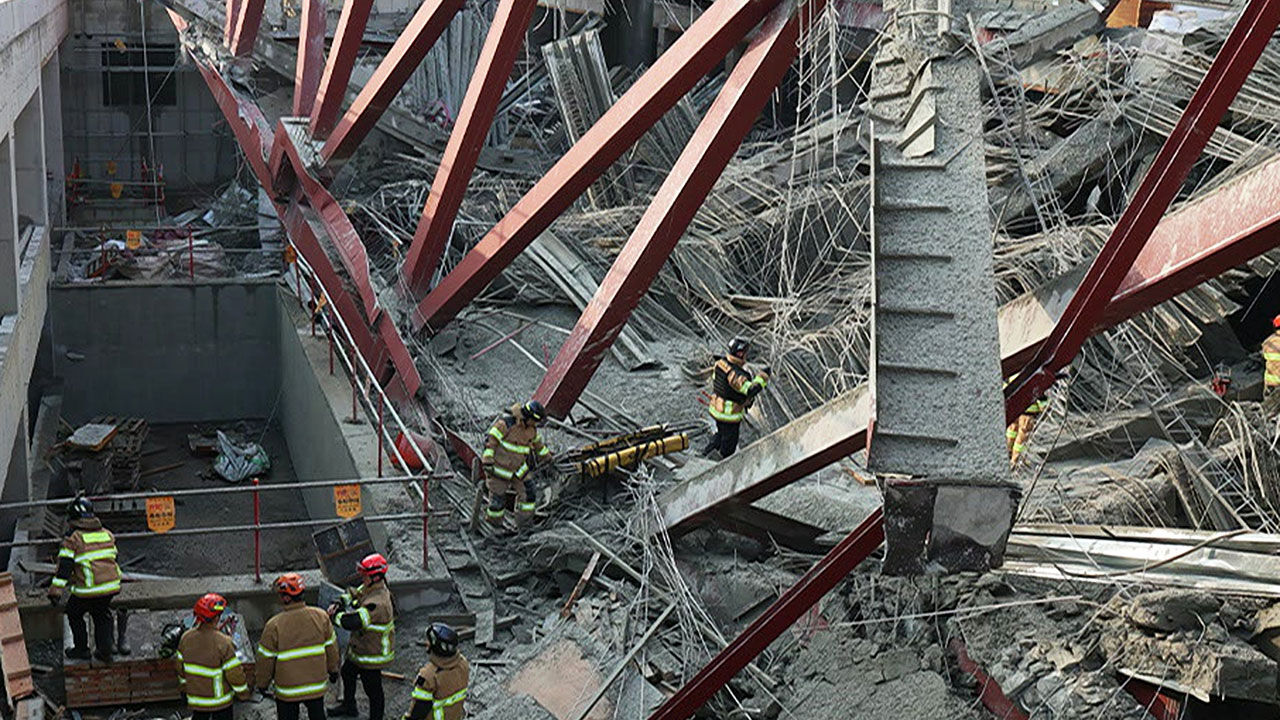 이번 사고는 콘크리트 타설 작업이 진행되던 2층 옥상에서 시작된 것으로 추정됩니다.