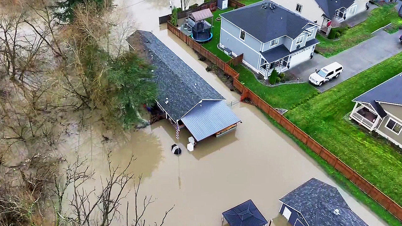 시애틀 북쪽 벌링턴시에서 게이지슬로 강이 범람해 주택 침수가 시작되자 당국은 주민 수만 명에게 대피령을 내렸습니다.