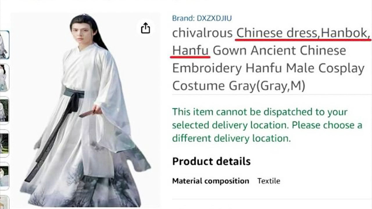 이번에는 미국의 아마존 사이트에서 중국 전통 의상의 한푸와 한복이 함께 표기돼서 판매되고 있다고요?