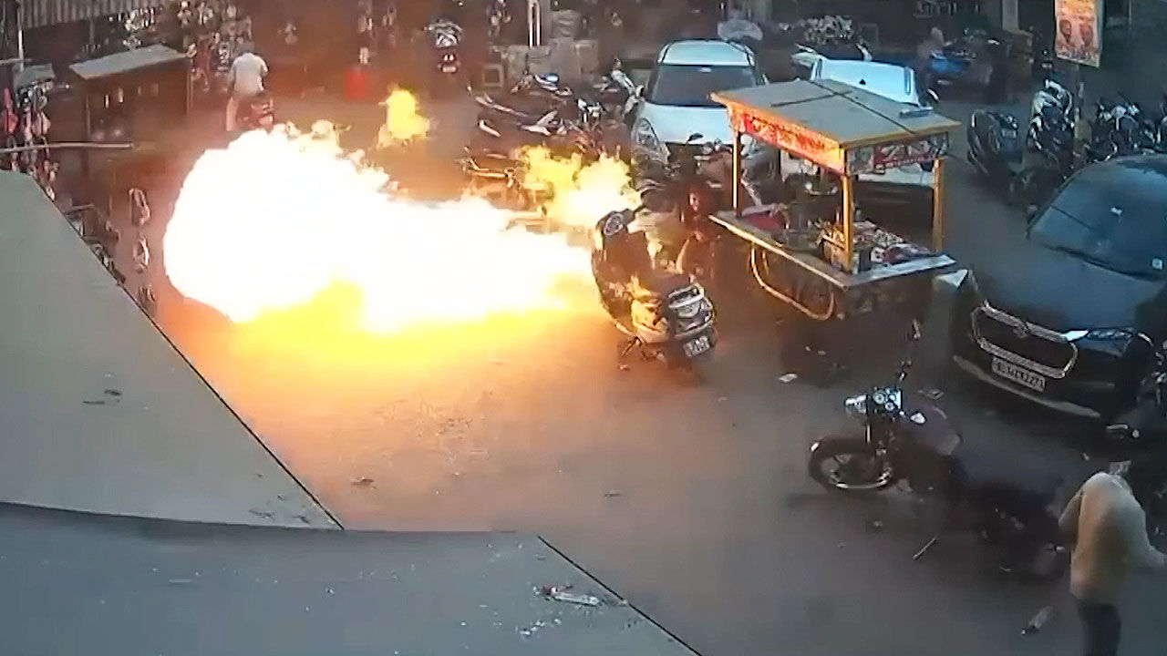 인도의 한 시장에서 아찔한 폭발 사고가 발생했습니다.