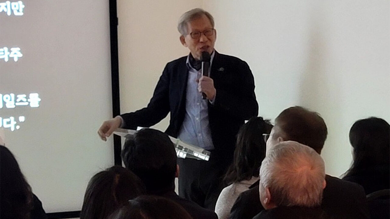 ▲ 유홍준 국립중앙박물관장이 16일(현지시간) 워싱턴 DC의 한국문화원에서 강연하고 있다.