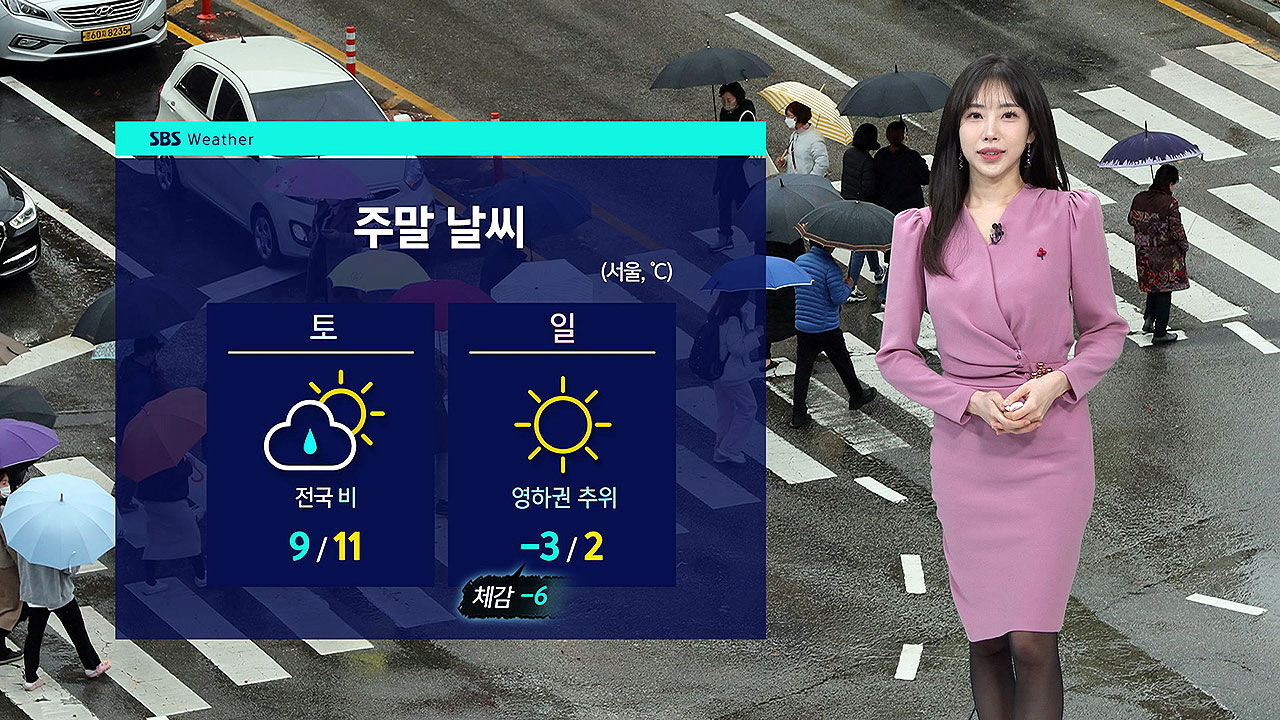 주말인 내일(20일)은 전국에 비가 내리겠고요, 일요일에는 다시 맑아지겠지만 영하권으로 기온이 뚝 떨어져 춥겠습니다.