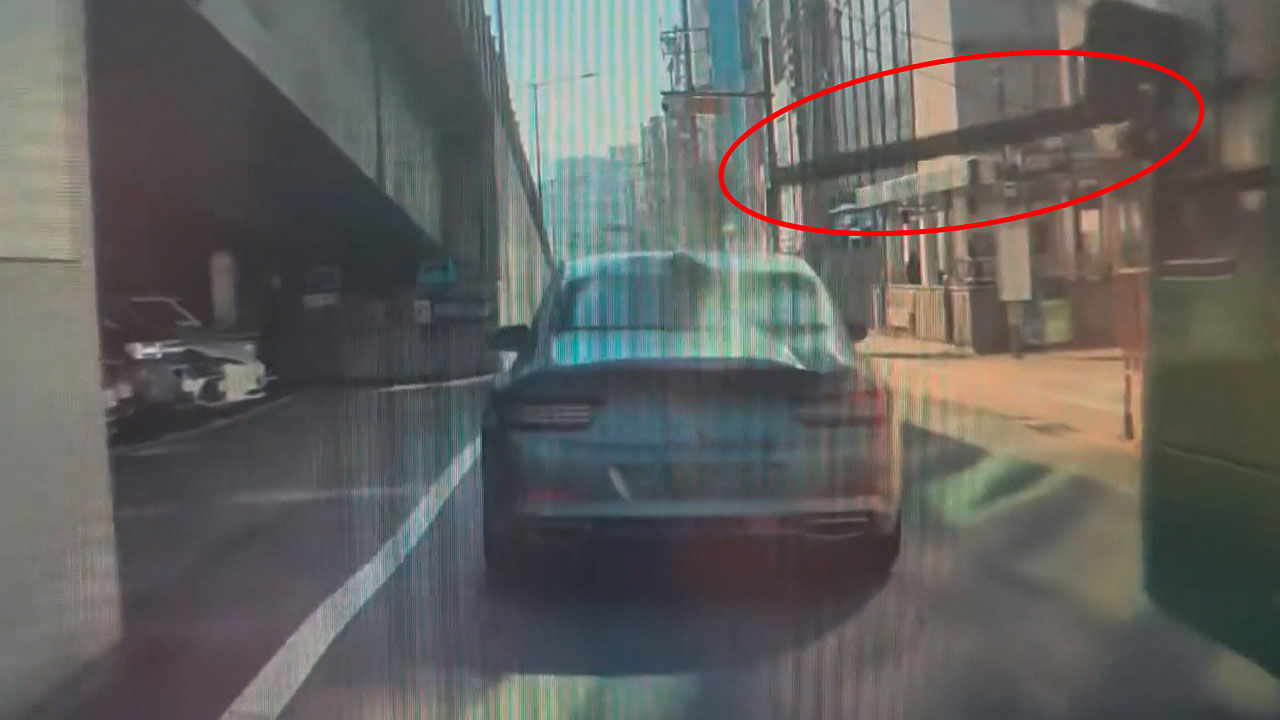 해당 물체는 앞서 가던 차량의 트렁크 부근을 강하게 때린 뒤, 옆 차로로 튕겨 나가 주행 중이던 버스 쪽으로 날아갔습니다.