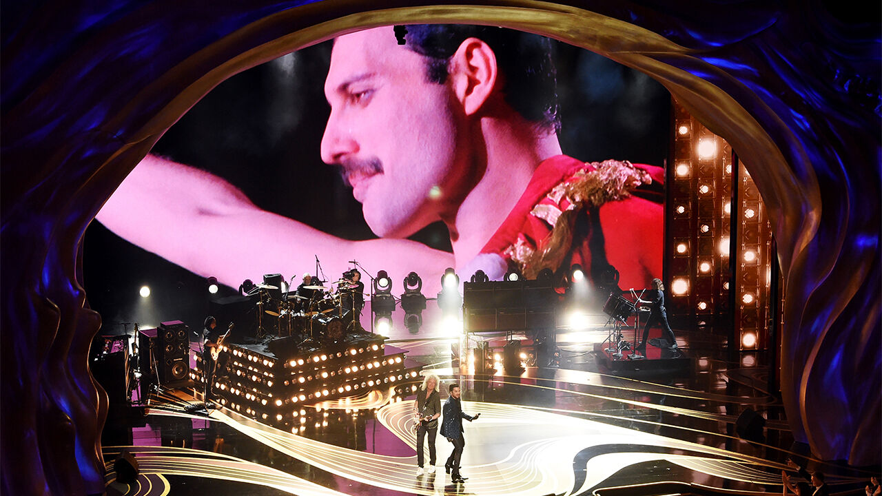 ▲ 2019년 아카데미상 수상식 때 스크린에 비친 프레디 머큐리의 생전 모습