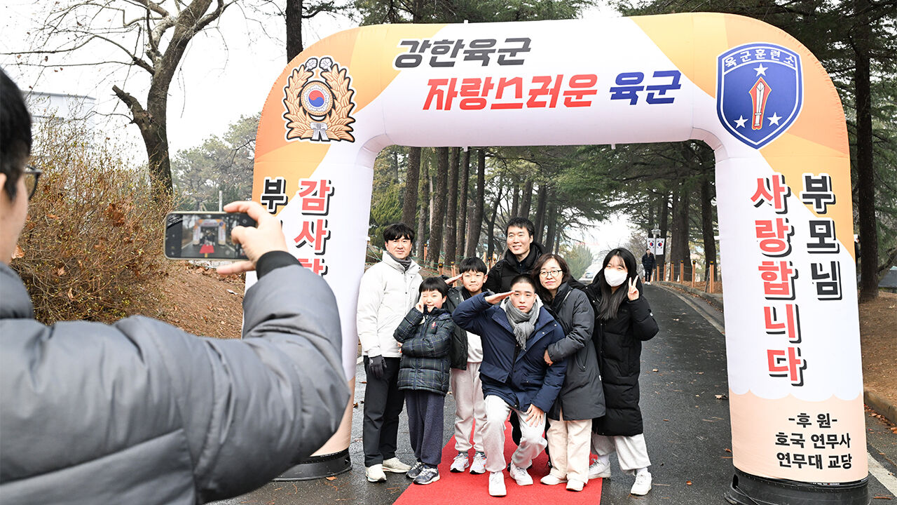 ▲ 충남 논산 육군훈련소 입소 기념 촬영하는 입영 장정