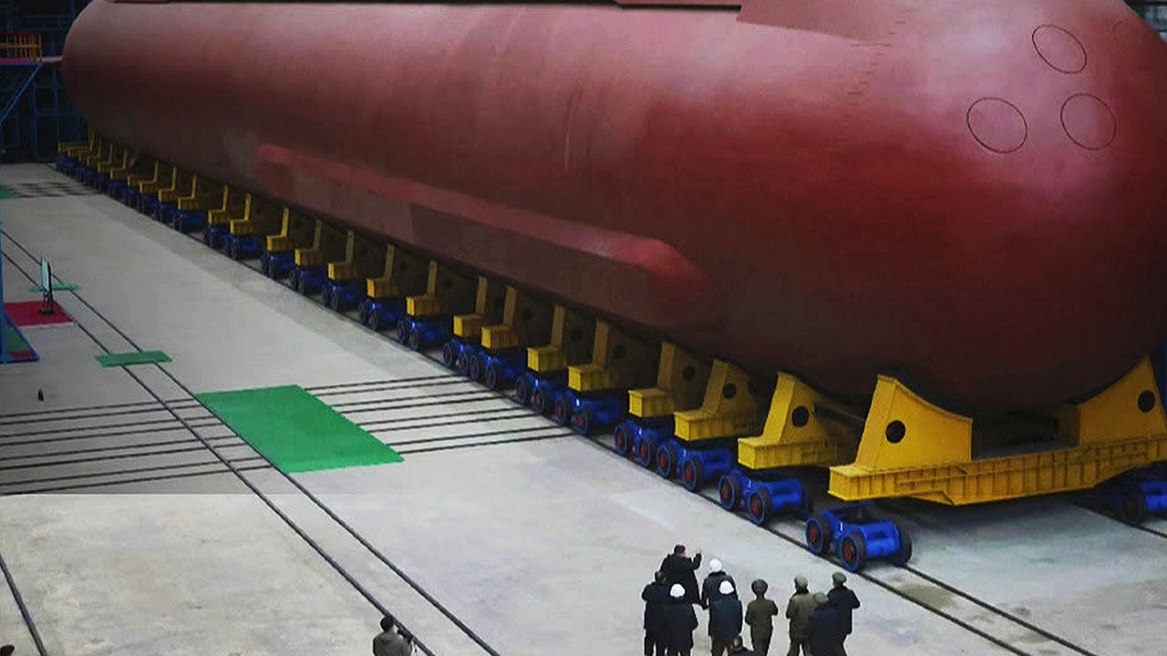 북한이 공개한 8천700톤급 '핵동력 전략유도탄 잠수함' 모습입니다.