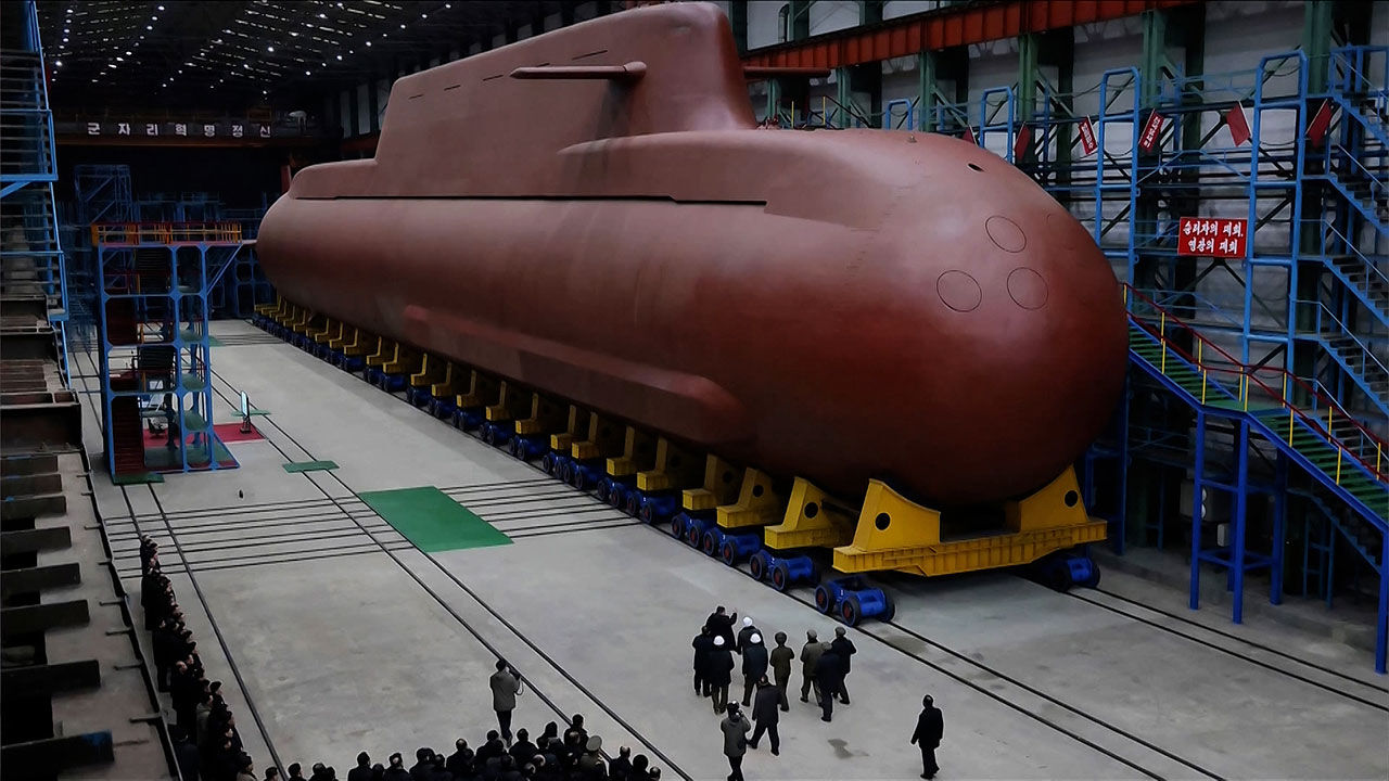 북한이 건조 중인 핵 잠수함의 전체 모습을 전격적으로 공개했습니다. 김정은 총비서는 북한의 핵잠 개발은 안전을 지키기 위한 거라면서도, 한국의 핵잠 건조는 한반도의 불안정을 불러올 거라고 비난했습니다.