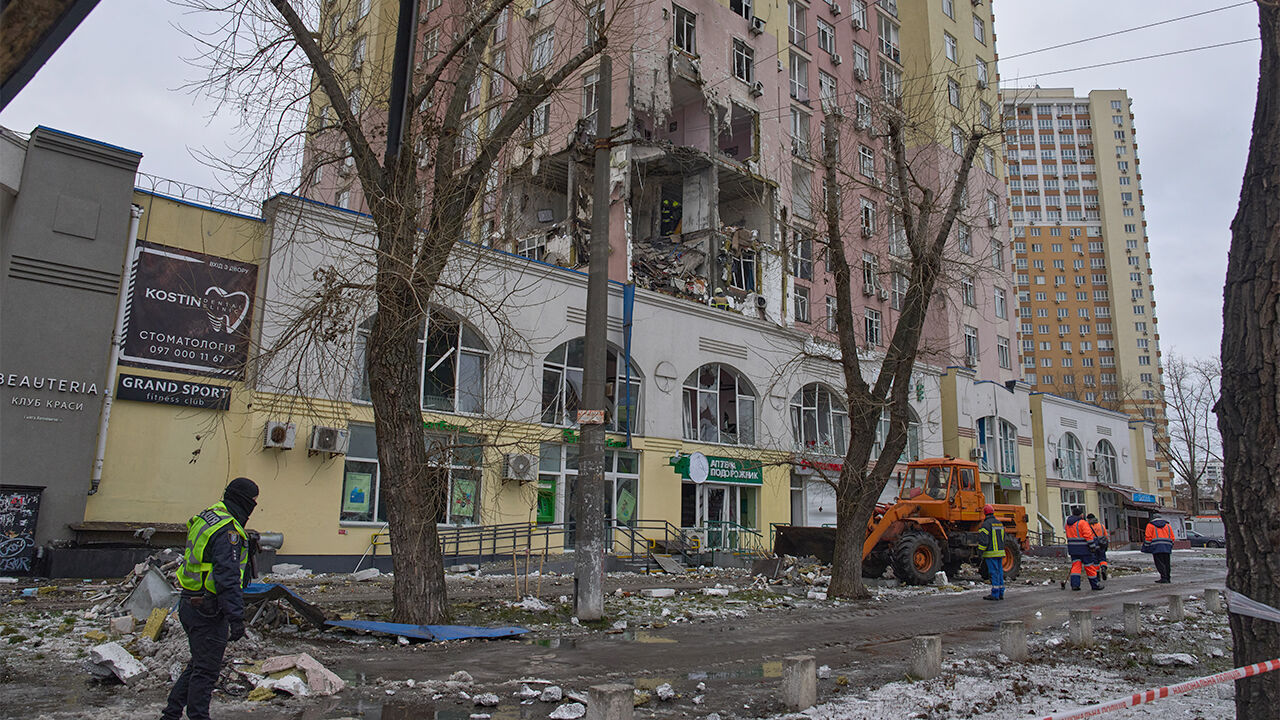▲ 현지시간 27일 우크라이나 키이우에서 러시아의 대규모 미사일 및 드론 공격으로 무너진 아파트.