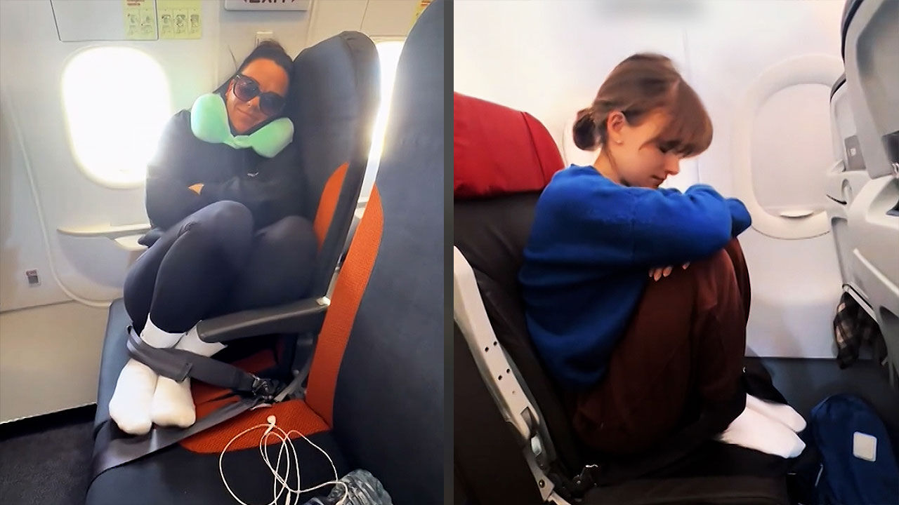 최근 해외 소셜미디어에 장거리 비행 시 좁은 좌석에서도 숙면을 취할 수 있는 방법이라며 올라온 영상입니다.