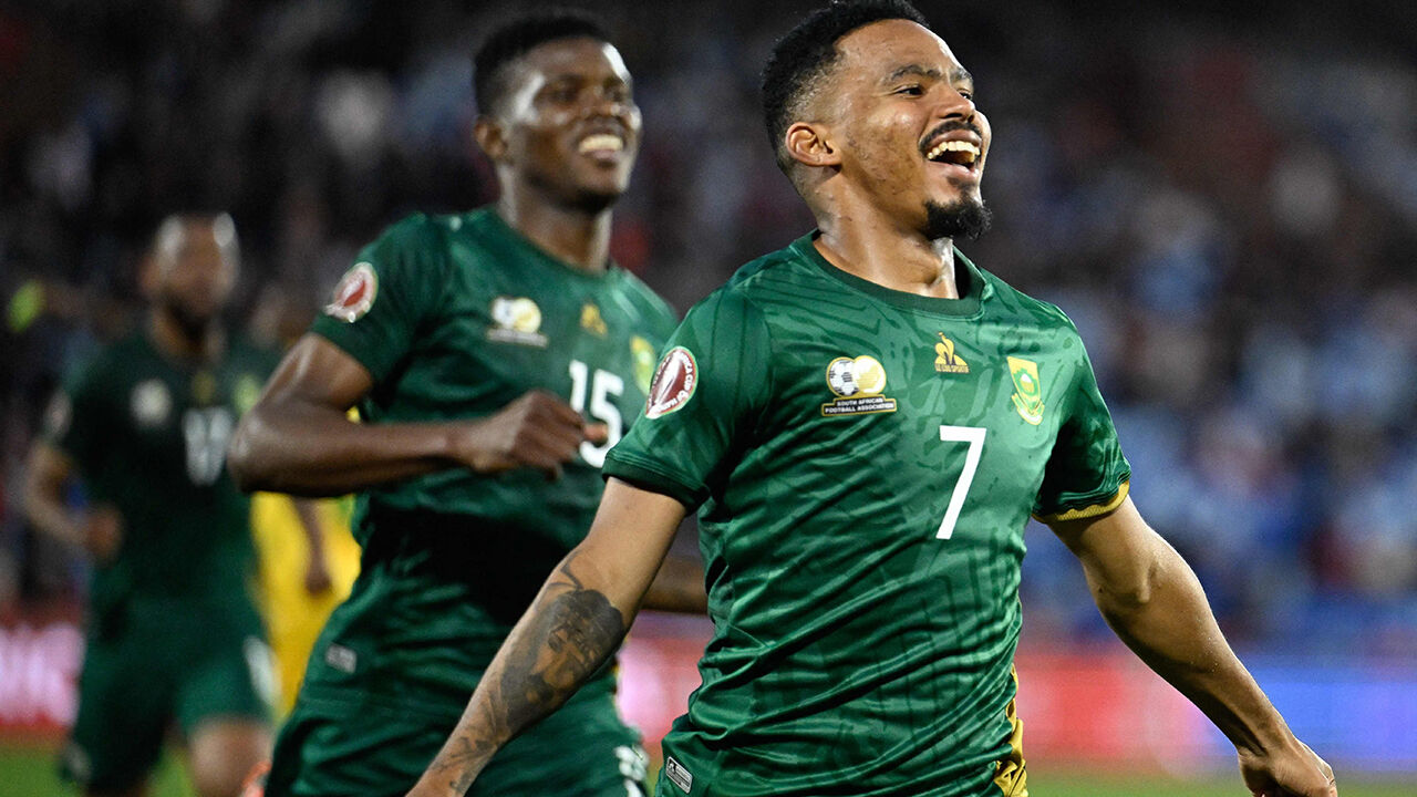 ▲ 짐바브웨와 경기에서 결승골을 터트린 남아공 오스윈 아폴리스의 세리머니 모습