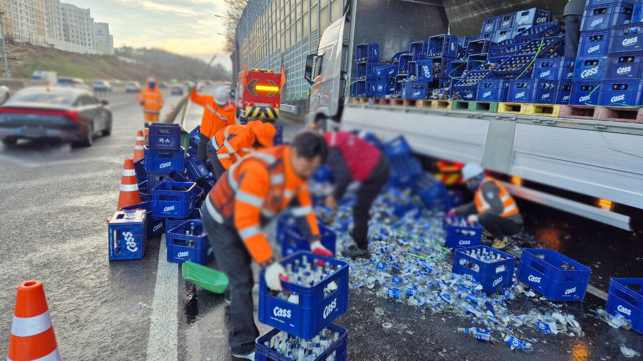 오늘(30일) 오전 3시 10분 광주 북구 동림동 호남고속도로(순천 방향) 동림IC 램프 구간을 주행 중이던 25t 화물차에서 맥주 상자가 도로로 떨어졌습니다.