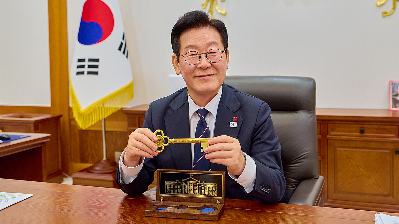 이재명 대통령이 30일 도널드 트럼프 미국 대통령에게서 선물 받은 백악관 황금열쇠를 '언박싱'(개봉) 하는 모습을 공개했습니다.