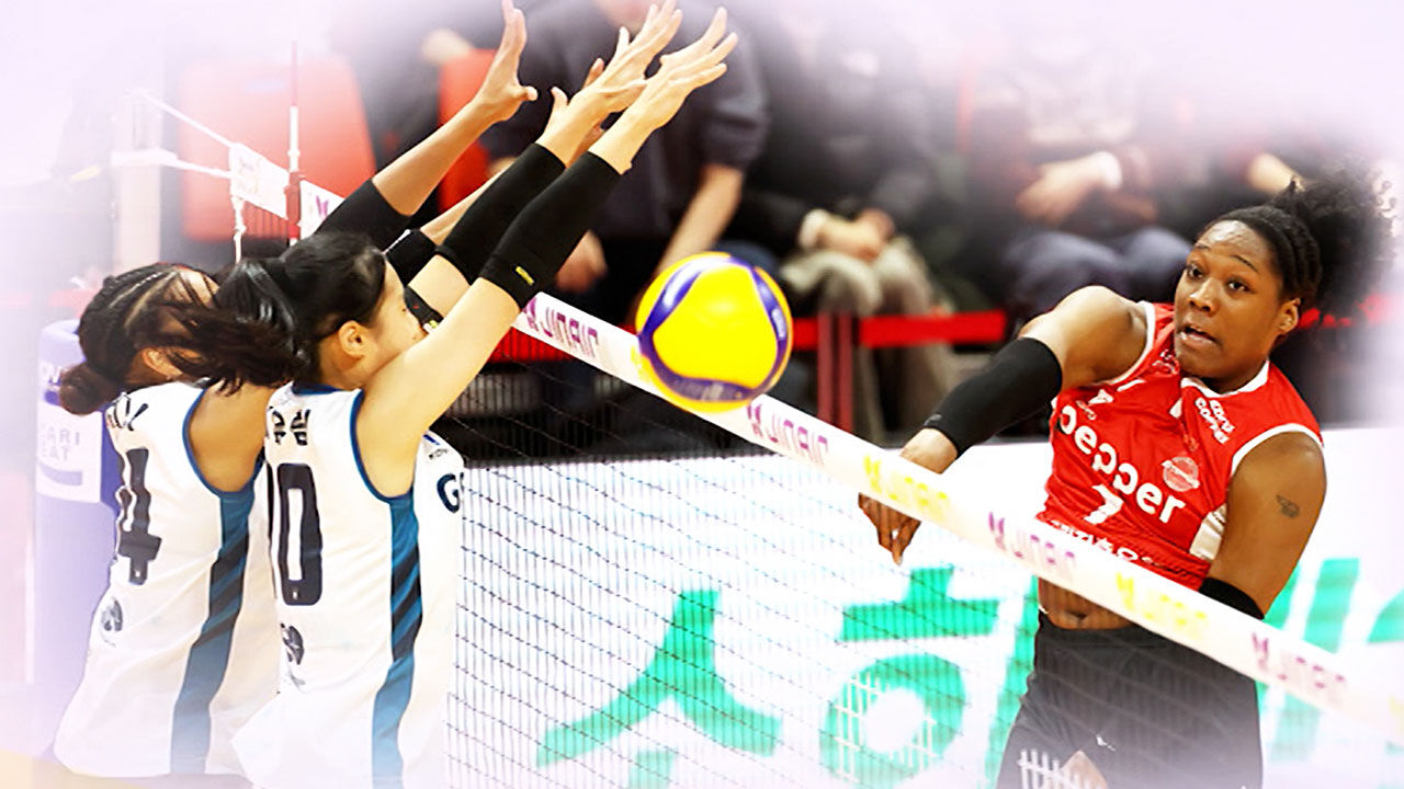 GS칼텍스에 1세트를 내주며 불안하게 출발한 페퍼저축은행은, 2세트 막판 조이의 결정적인 블로킹 이후, 기세를 몰아 승부를 원점으로 돌렸습니다.