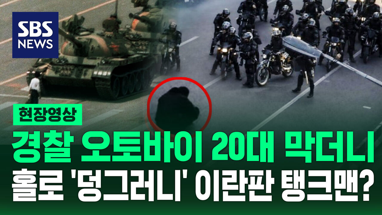 해당 영상을 보면 이 남성은 대로에 맨몸으로 앉아 고개를 숙이고 있는데요. 이 남성 앞으로는 오토바이를 탄 경찰관 20여 명이 해당 도로를 지나가기 위해 시도를 하고 있습니다.