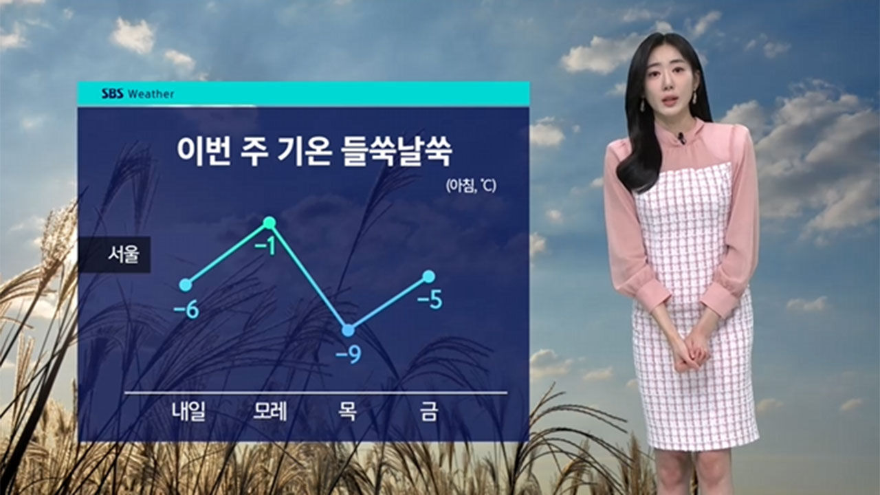 목요일에 서울의 아침 기온이 영하 9도까지 떨어지겠습니다.