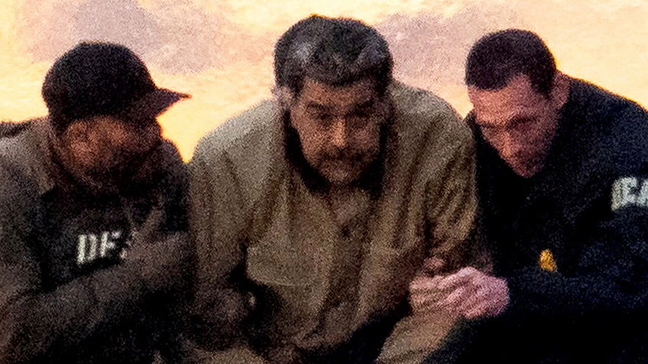 죄수복을 입은 마두로 베네수엘라 대통령과 부인 플로레스가 헬기에서 내립니다.