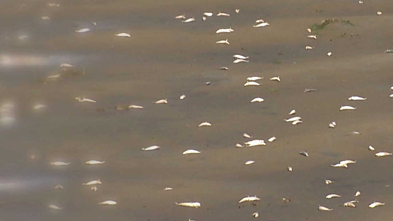 물이 빠지고 드러난 바닥에는 이렇게 죽은 물고기가 하얗게 널려 있습니다.