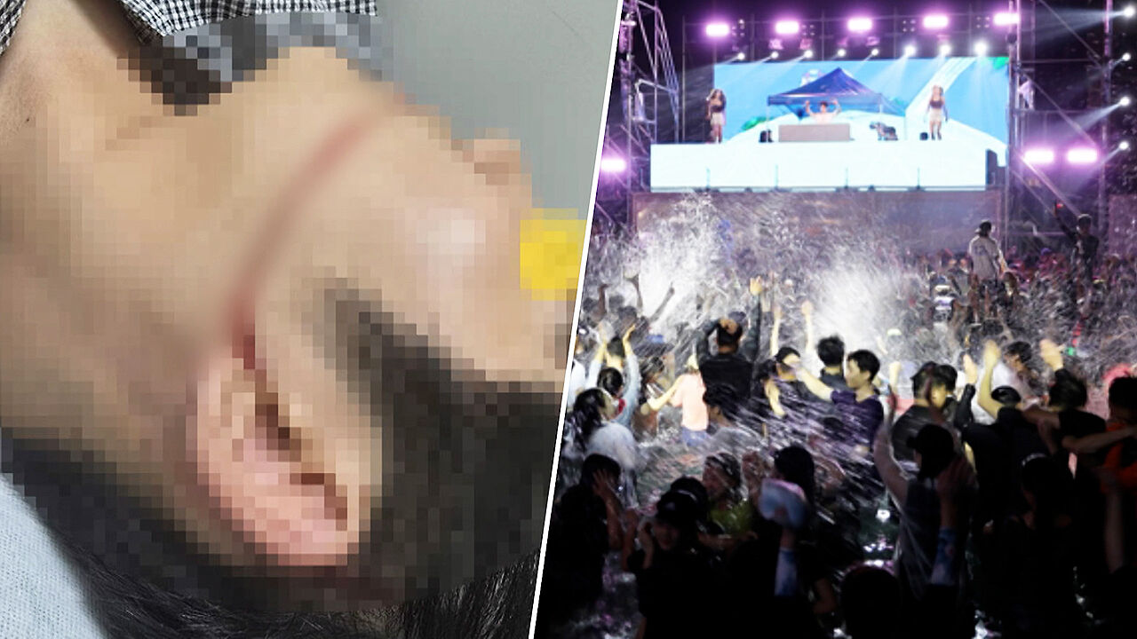 공연 도중 대학생 A 씨가 동료가 쏜 고압 워터건, 그러니까 물총 물줄기에 얼굴과 손등을 맞아 피부가 찢어지는 중상을 입었습니다.