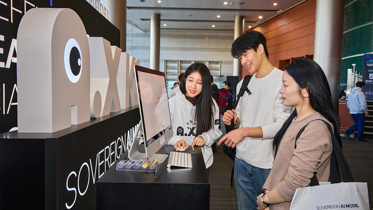▲ 지난달 30일 서울 강남구 코엑스에서 열린 '독자 AI 파운데이션 모델 프로젝트 1차 발표회'에서 방문자가 SK텔레콤 A.X K1 모델을 사용하고 있다.