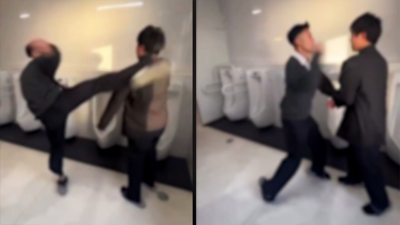 그런데 격투기 경기 시작을 알리듯 구호가 울리자 한 학생이 다른 학생을 마구 때리기 시작합니다.