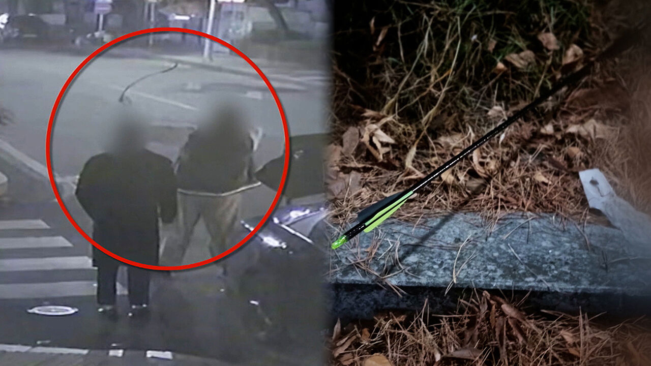 어젯(7일)밤 충북 청주시에서 반려견과 산책하던 여성의 옆으로 화살이 날아왔습니다. 다행히 다친 사람은 없었지만, 80cm 길이의 금속 화살이라 하마터면 인명피해로 이어질 뻔했습니다. 경찰은 CCTV에 포착된 남성 2명을 쫓고 있습니다.