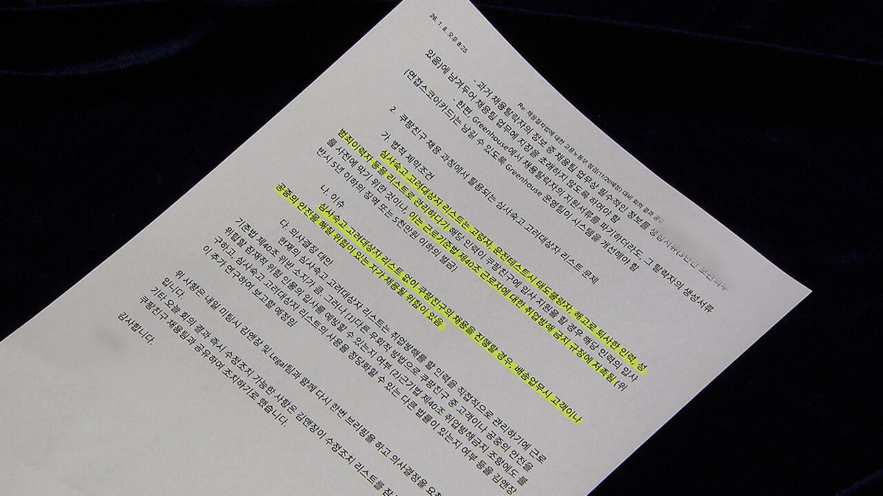 고용노동부의 채용 절차 점검에 대비하기 위한 내용으로, 현재 임시 대표를 맡고 있는 해롤드 로저스 등 임원급에도 공유됐습니다.