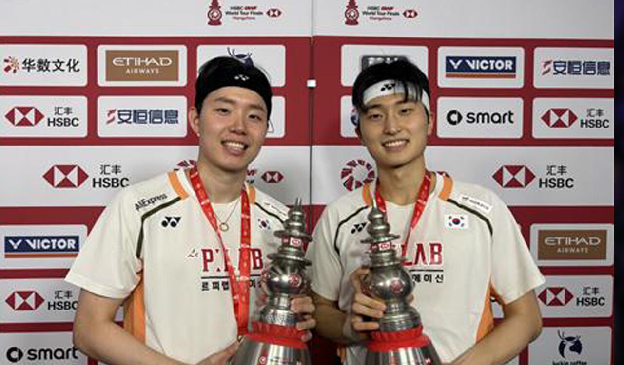 ▲ 우승 트로피 들어 보이는 서승재-김원호(좌측부터)