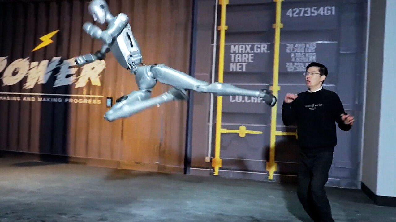 성인 남자 얼굴 높이까지 뛰어올라 날아 차기를 하고 수박을 산산조각내는 중국 휴머노이드는 역동적인 움직임을 앞세워 전 세계를 공략합니다.