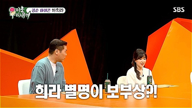 이날 서장훈은 하희라에 대해 소문난 보부상이라고 말했다. 그러자 신동엽은 대체 뭘 갖고 다니는 거냐고 물었다.
