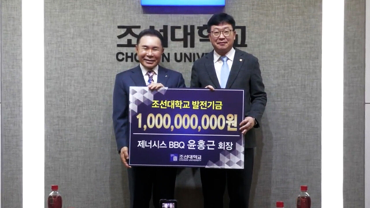 제너시스BBQ 그룹이 조선대학교에 발전기금 10억 원을 기부했습니다.