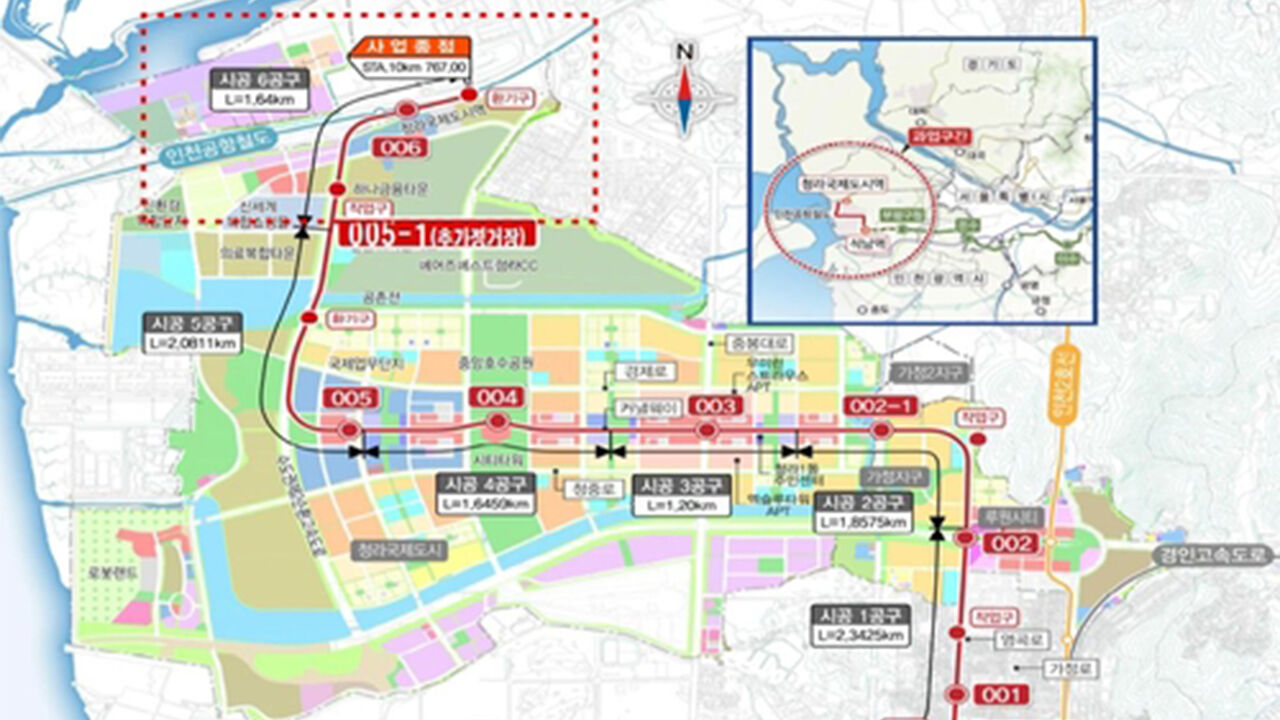 청라 연장선 사업은 2023년 10월 6공구 끝부분인 006정거장 건설을 위해 공항철도 청라국제도시역 부근 지반을 굴착하는 과정에서 다량의 지하수가 유출돼 지반 침하가 발생했습니다.