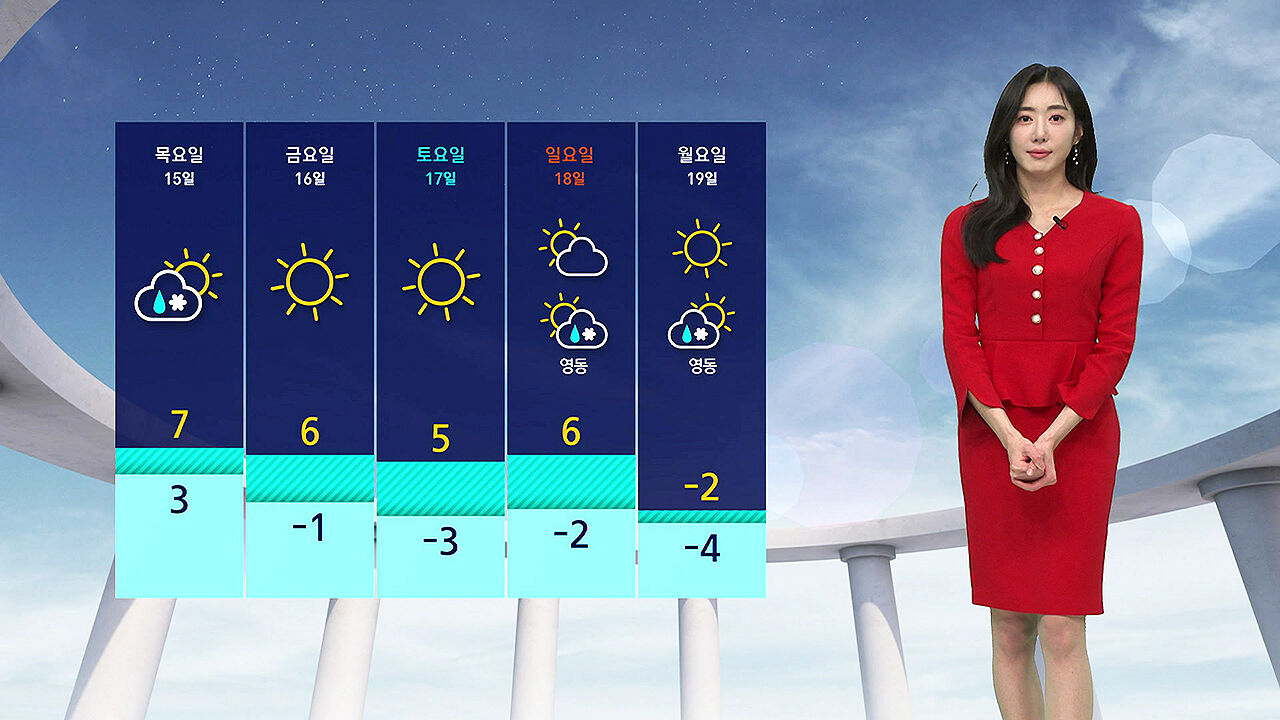 가평과 철원이 오늘 아침에 영하 15도로 어제보다 10도가량 기온이 뚝 떨어지겠고, 서울도 영하 9도까지 떨어지겠습니다.