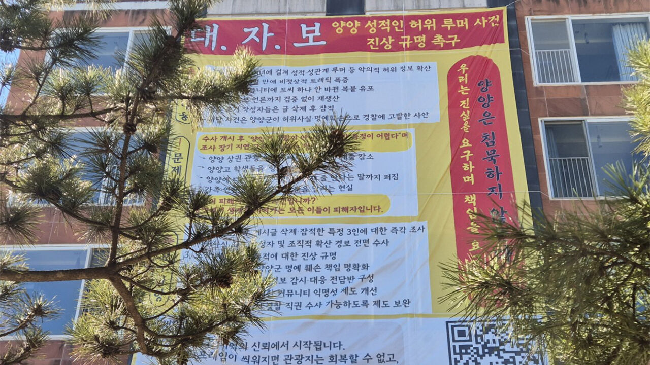 대자보에는 양양군을 둘러싼 허위사실 유포에 대한 철저한 진상 조사를 촉구하는 내용이 담겼습니다.