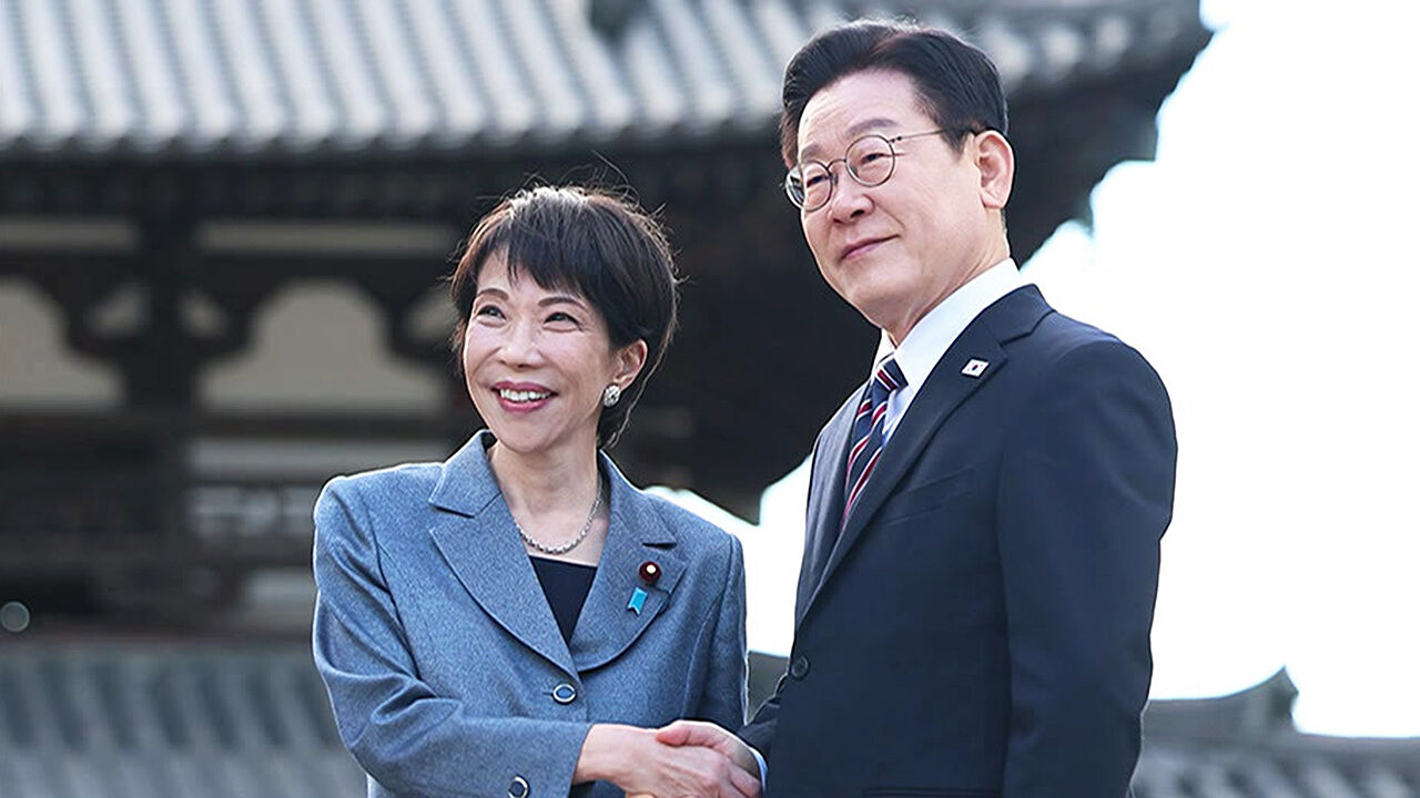 일본 나라현의 전통 사찰인 호류지에 도착한 이재명 대통령을 다카이치 사나에 일본 총리가 맞이합니다.
