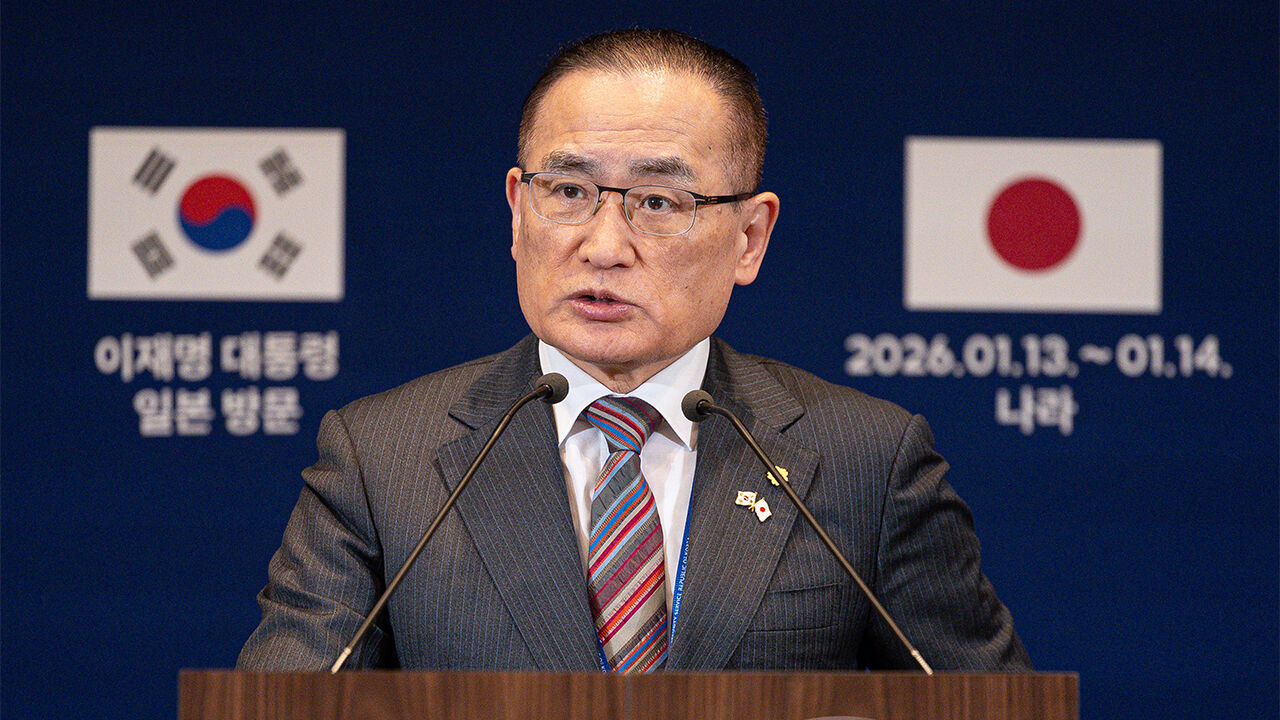 ▲ 위성락 국가안보실장이 14일 일본 오사카에 마련된 대한민국 프레스센터에서 한일 정상회담 관련 주요 성과 브리핑을 하고 있다.
