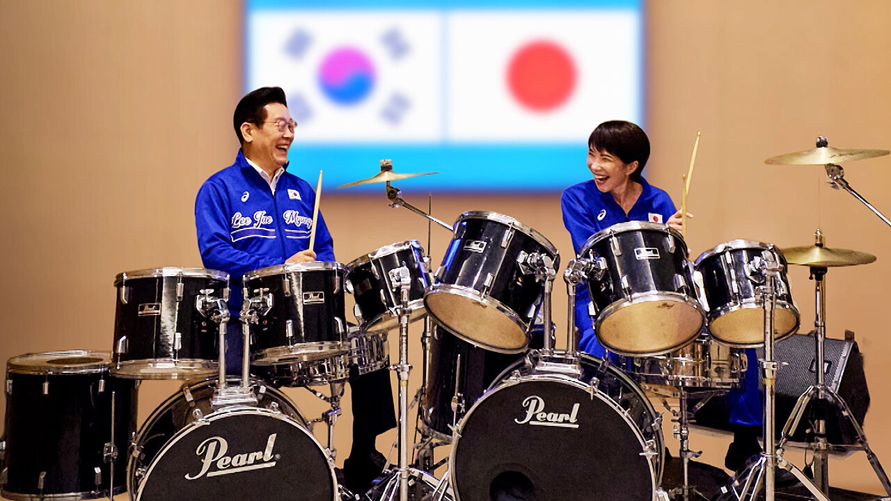 드럼 애호가인 다카이치 총리가 즉석 레슨을 하면서 이 대통령과 함께 드럼을 연주한 겁니다.