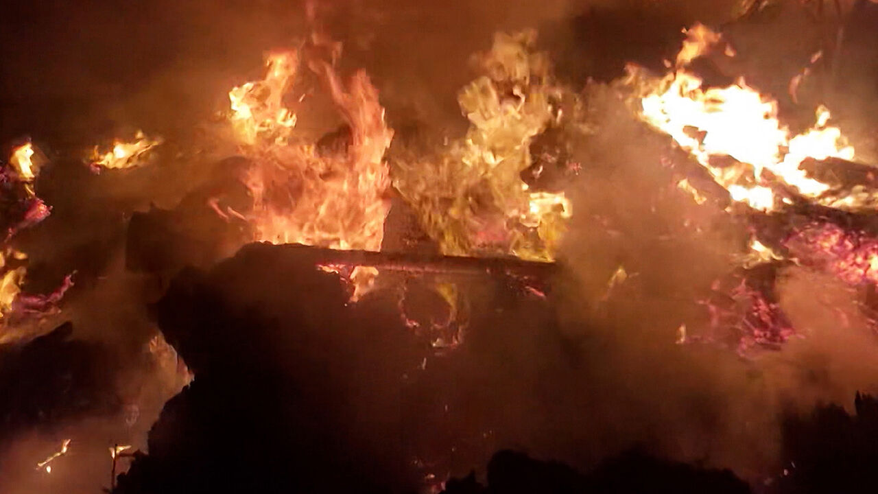 불티가 사방으로 날아다니고, 폭발음도 이어집니다.