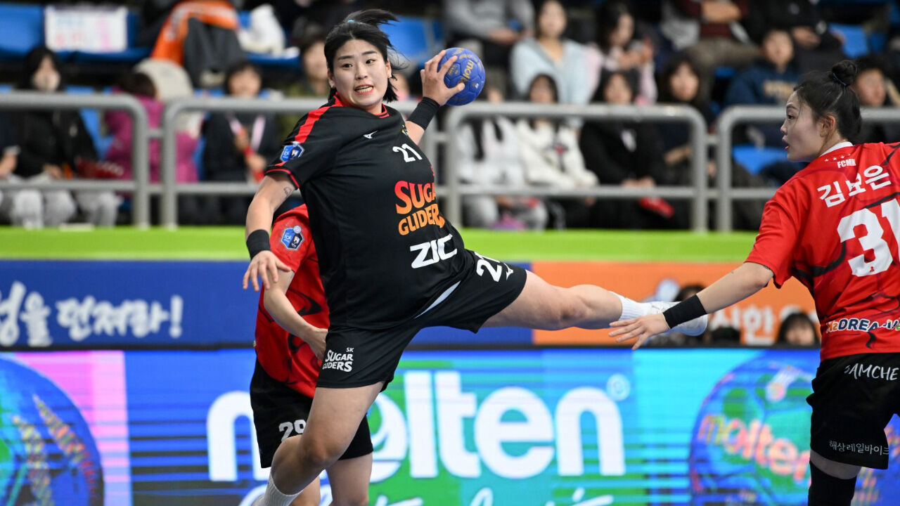 SK 슈가글라이더즈가 강경민의 역전 결승 7m 스로를 앞세워 핸드볼 H리그 개막 2연승을 달렸습니다.
