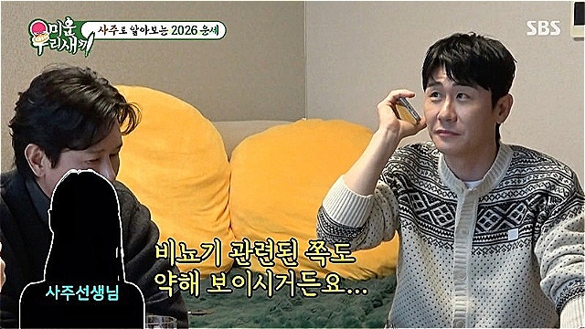 그리고 김민종에 대해서는 "고집이 있으신 거 같다. 그런데 또 한쪽으로는 귀가 얇다"라고 말했다. 이어 "연애운이 너무 좋으시다. 올해는 귀인운도 있다. 올해를 놓치면 안 된다. 올해 4~6월 사이에 귀인이 온다"라고 말해 김민종을 들뜨게 만들었다.