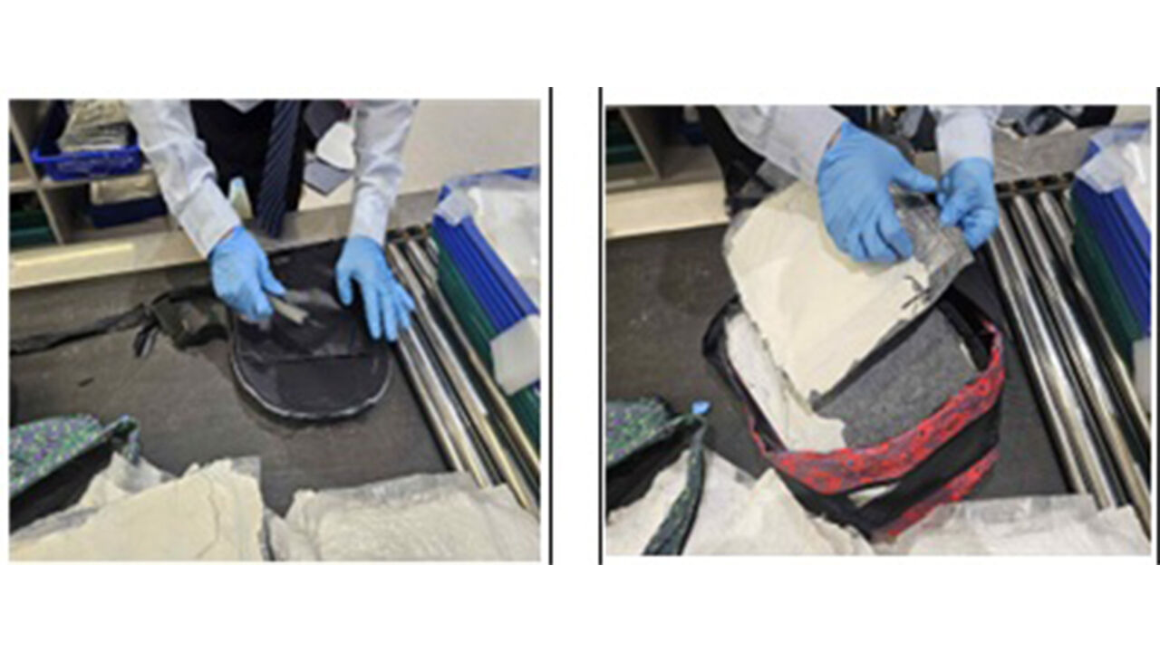 ▲ 작년 12월 인천공항세관이 태국발 항공여행자가 아동용 백팩 뒷면에 은닉한 필로폰 4.9㎏를 적발했다.