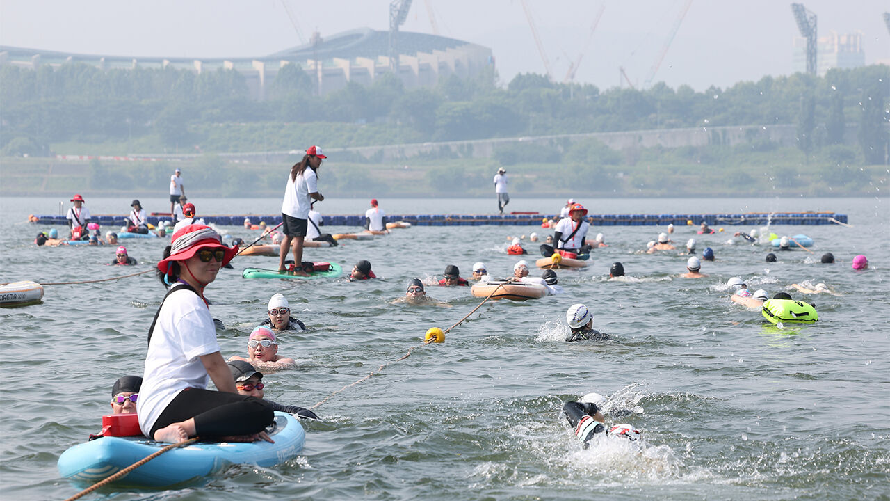 ▲ 지난해 6월 1일 서울 광진구 뚝섬한강공원에서 열린 '제2회 쉬엄쉬엄 한강 3종 축제'에서 시민들이 수영을 하고 있다.